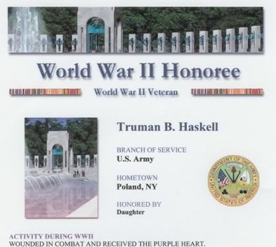 21. TRUMAN B HASKELL, b. 1 May 1919, d. 18 Nov 1981, m. Mildred E. Orr