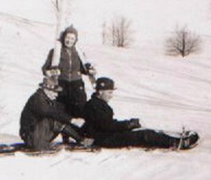 Tommy Lawson, Maude, and Bucky Tobogganing